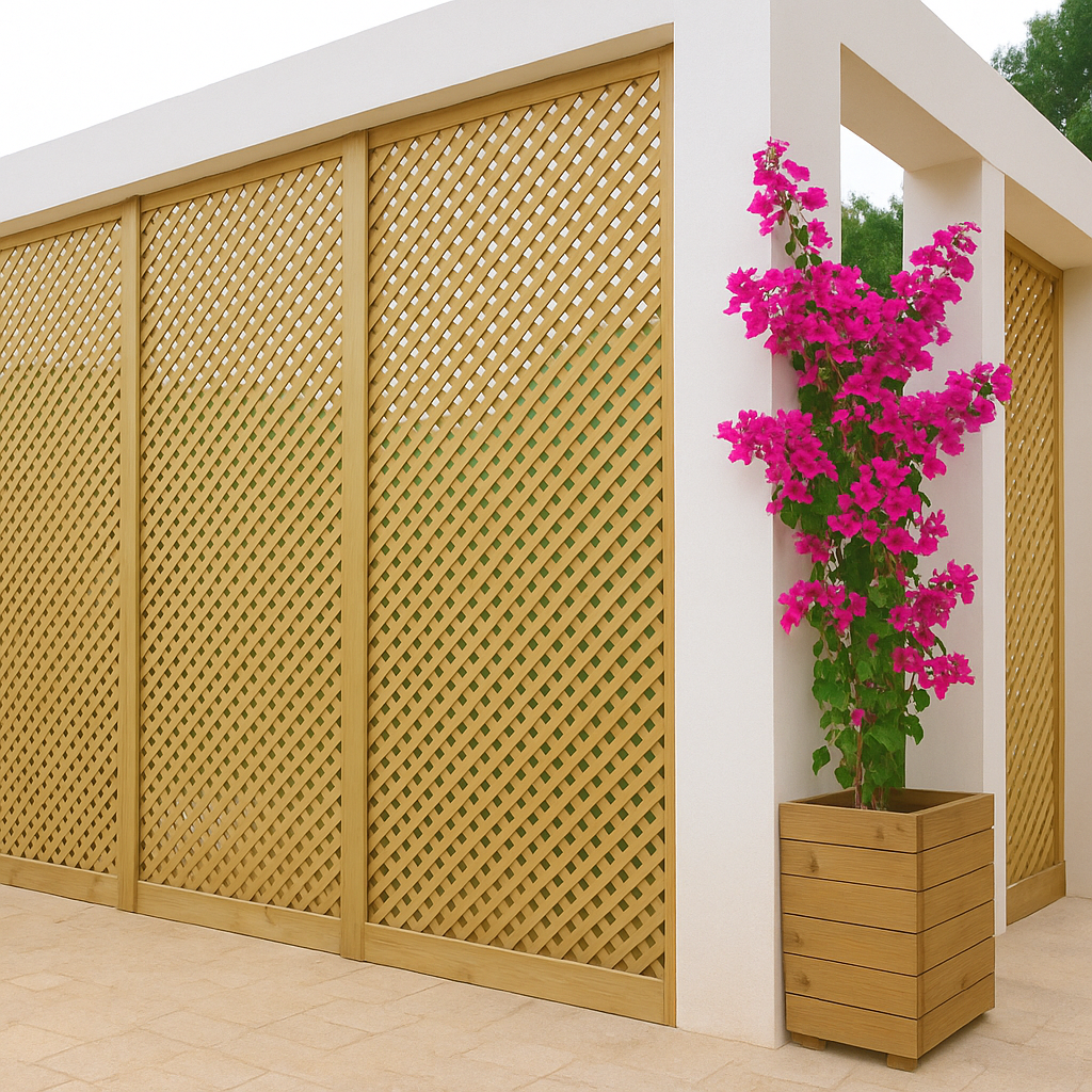 Τα ξύλινα καφασωτά λειτουργούν σαν φυσικά διαχωριστικά που «φιλτράρουν» το φως, οριοθετούν και υποστηρίζουν την ανάπτυξη αναρριχώμενων φυτών. Είναι ιδιαίτερα δημοφιλή σε κήπους, βεράντες, εισόδους κατοικιών ή εξωτερικά καθιστικά σε χώρους φιλοξενίας.