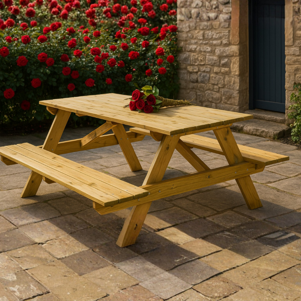 Τα έπιπλα SHOWOOD κατασκευάζονται από εμποτισμένη σκανδιναβική ξυλεία και έχουν το φυσικό, αυθεντικό χαρακτήρα που ταιριάζει σε κάθε γιορτινό σκηνικό. Τραπέζια, πάγκοι και καρέκλες εξωτερικού χώρου μπορούν να διακοσμηθούν με κεριά, γιρλάντες ή κουβέρτες για μια χουχουλιάρικη, γιορτινή ατμόσφαιρα.