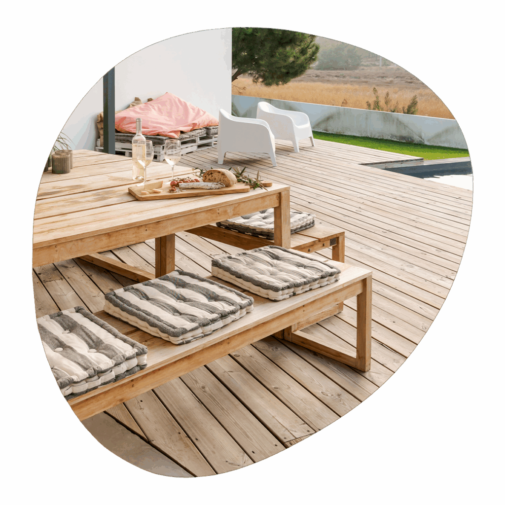 Το ξύλινο decking δεν είναι μόνο για το καλοκαίρι. Αντέχει στον ήλιο, τη βροχή, την υγρασία και τις μεταβολές της θερμοκρασίας, καθιστώντας το ιδανικό για: